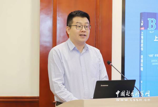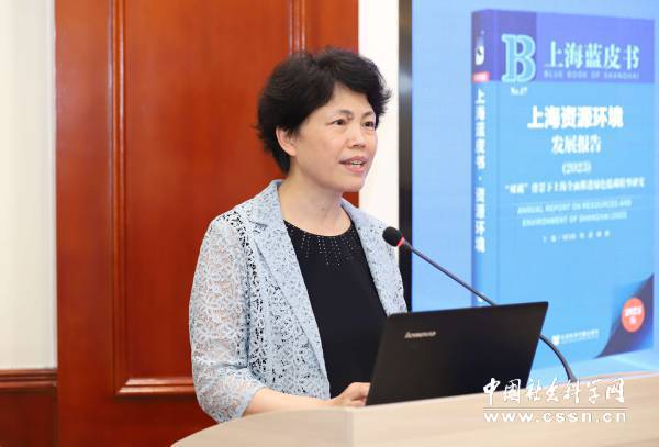 上海社會科學院生態(tài)與可持續(xù)發(fā)展研究所所長、《上海藍皮書:上海資源環(huán)境發(fā)展報告(2023)》主編周馮琦研究員作介紹本網(wǎng)記者陳煉/攝