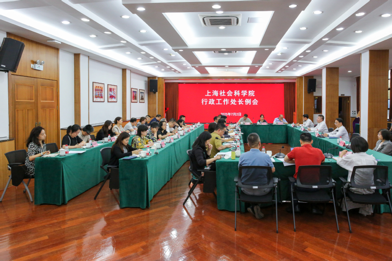 7月2日,上海社會科學院2025年第一次行政工作處長例會在院部小禮堂召開。常務副院長干春暉主持會議并講話,黨委副書記姚建龍,副院長吳雪明、劉蕓出席會議。職能處室、研究生院有關負責人,研究所辦公室負責人參加會議。