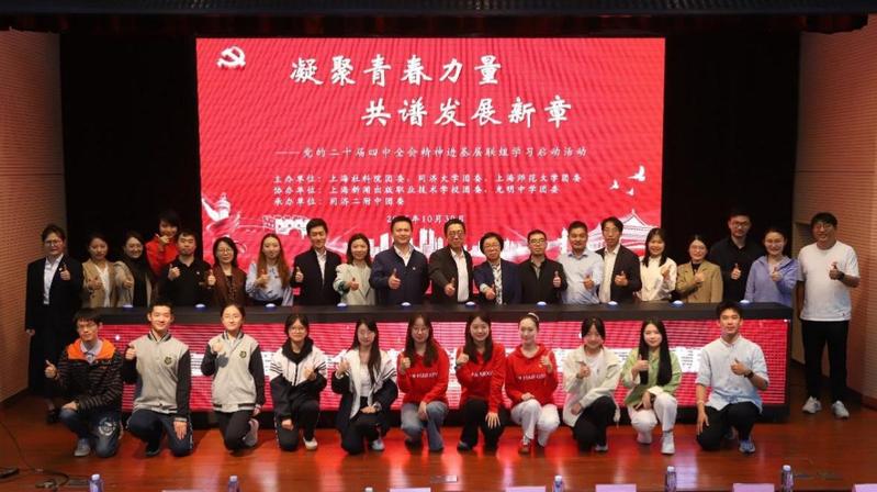 10月30日,由上海社會(huì)科學(xué)院團(tuán)委、同濟(jì)大學(xué)團(tuán)委與上海師范大學(xué)團(tuán)委主辦,上海新聞出版職業(yè)技術(shù)學(xué)校團(tuán)委、光明中學(xué)團(tuán)委協(xié)辦,同濟(jì)大學(xué)第二附屬中學(xué)團(tuán)委承辦的“凝聚青春力量 共譜發(fā)展新章——黨的二十屆四中全會(huì)精神進(jìn)基層聯(lián)組學(xué)習(xí)”首場(chǎng)啟動(dòng)儀式在同濟(jì)二附中舉行。團(tuán)市委宣傳與網(wǎng)絡(luò)工作部、學(xué)校工作部代表出席活動(dòng)。