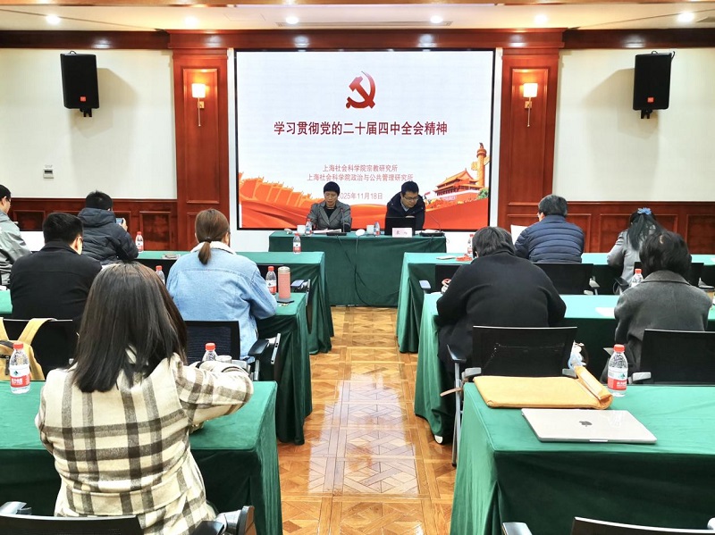 為深入學習領會、全面貫徹落實黨的二十屆四中全會精神,11月18日上午,宗教研究所黨支部與政治與公共管理研究所黨支部開展黨的二十屆四中全會精神專題聯(lián)組學習,邀請市委黨校袁峰研究員做《學習黨的二十屆四中全會精神 全面貫徹落實“十五五”規(guī)劃》的專題輔導報告。會議由宗教研究所黨支部副書記佘凌同志主持,宗教研究所及政治與公共管理研究所全體職工參與此次專題學習。
