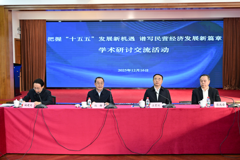 權(quán)衡在開幕致辭中指出,黨的二十屆四中全會(huì)明確了“十五五”時(shí)期經(jīng)濟(jì)社會(huì)發(fā)展的指導(dǎo)方針和主要目標(biāo),也從理論到實(shí)踐、從宏觀到微觀,擘畫了民營經(jīng)濟(jì)發(fā)展的廣闊前景。“十五五”時(shí)期在基本實(shí)現(xiàn)社會(huì)主義現(xiàn)代化進(jìn)程中具有承前啟后的重要地位,是民營經(jīng)濟(jì)邁向高質(zhì)量發(fā)展、實(shí)現(xiàn)經(jīng)濟(jì)結(jié)構(gòu)優(yōu)化升級(jí)取得實(shí)質(zhì)性和突破性進(jìn)展的關(guān)鍵時(shí)期。要當(dāng)好理論研究和實(shí)踐探索的科研人,當(dāng)好研判形勢、建言獻(xiàn)策的智庫人,當(dāng)好講好故事、弘揚(yáng)傳承的宣傳人,不折不扣落實(shí)關(guān)于促進(jìn)民營經(jīng)濟(jì)發(fā)展壯大的戰(zhàn)略部署和決策意圖,發(fā)揮社科院理論研究、實(shí)踐調(diào)查、決策咨詢等功能,會(huì)同各方面助推各項(xiàng)政策措施落地、落細(xì)、落實(shí),以更高站位、更嚴(yán)標(biāo)準(zhǔn)、更實(shí)舉措推動(dòng)民營經(jīng)濟(jì)健康發(fā)展、高質(zhì)量發(fā)展。