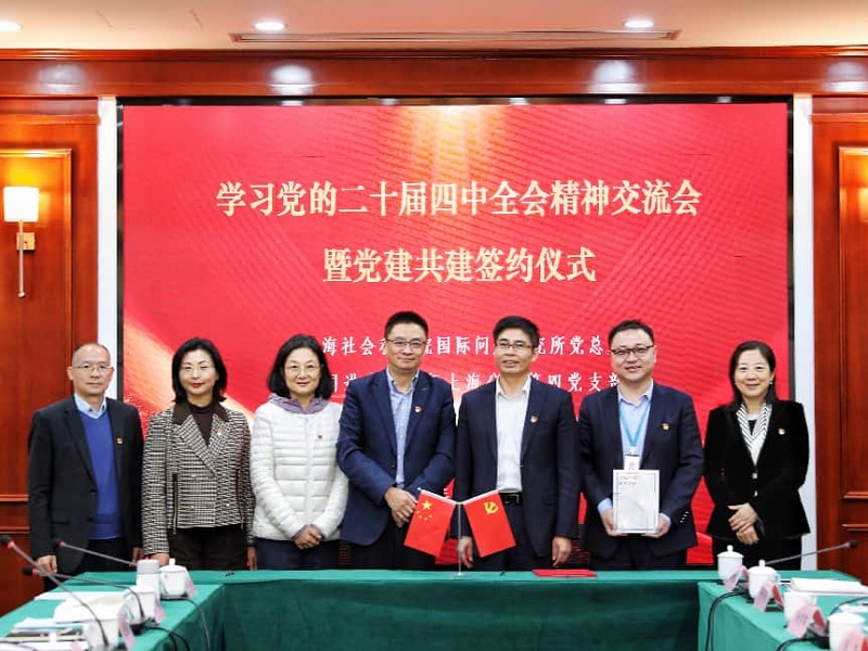 近日,國(guó)際問(wèn)題研究所黨總支和中國(guó)進(jìn)出口銀行上海分行第四黨支部共同舉行學(xué)習(xí)黨的二十屆四中全會(huì)精神交流會(huì)暨黨建共建簽約儀式。國(guó)際所辦公室主任周隆敏主持會(huì)議。